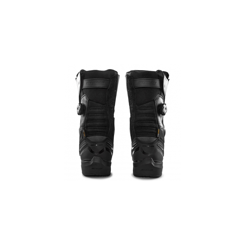 SHIMA TENEX WP LADY to turystyczno-sportowe buty motocyklowe, stworzone z myślą o krótszych i dłuższych podróżach, gdzie komfort i bezpieczeństwo idą w parze. Wykonane z trwałej mikrofibry oraz wzmocnione elementami z materiału CORDURA®, oferują niezrównaną ochronę na trasie. Dzięki bocznemu zapięciu ATOP, buty doskonale dopasowują się do stopy i kostki, gwarantując stabilność i komfort. Membrana NextDry™ zapewnia wodoodporność, a perforacja na bokach i przepuszczający powietrze język zapewniają doskonałą cyrkulację powietrza, co sprawia, że buty świetnie sprawdzą się w każdych warunkach pogodowych. Wzmocniona pięta, kostka i palce, a także polipropylenowa wkładka i zewnętrzne slidery na palcach, zapewniają maksymalne bezpieczeństwo podczas dynamicznej jazdy. Miękkie wykończenie cholewki oraz specjalna konstrukcja podszewki gwarantują wygodę, nawet podczas całodniowej jazdy. Antypoślizgowa podeszwa ESG daje pewność na każdym kroku, a panel odblaskowy na bokach i z tyłu buta zwiększa widoczność po zmroku, przez co dba o bezpieczeństwo pasywne motocyklisty.