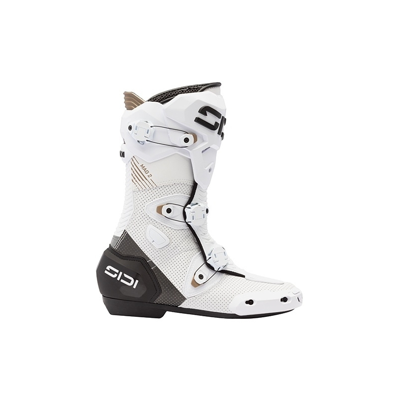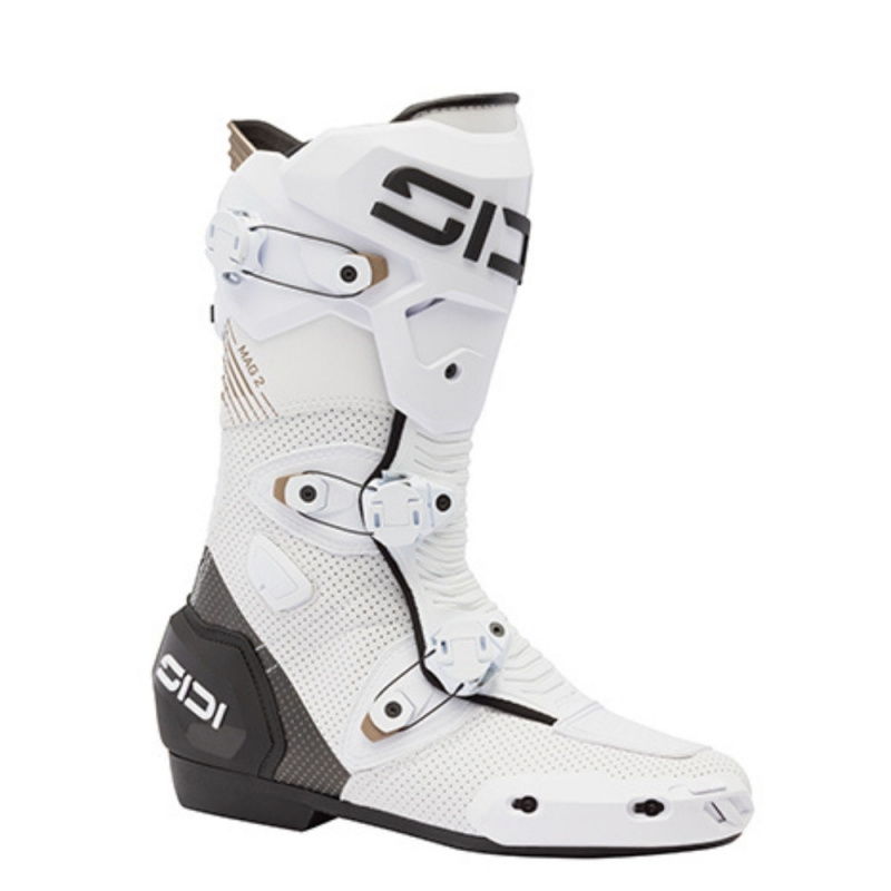 MAG 02 HAS BEEN DEVELOPED TO PROVIDE THE ULTIMATE SENSATION, ENSURING THAT RACERS RECEIVE ALL THE NECESSARY INFORMATION WHILE NAVIGATING EXTREME CONDITIONS. ITS CONCRECTO® SOLE IS THE RESULT OF OVER 60 YEARS OF EXPERTISE IN CREATING SOLES THAT OFFER A GENUINE CONNECTION TO THE MOTORCYCLE.