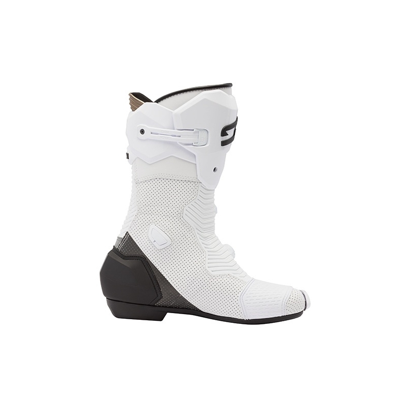 ALL THE BOOT IS EQUIPPED WITH ULTRA-HIGH-DENSITY PROTECTORS DESIGNED TO SHIELD AGAINST IMPACTS AND FACILITATE SLIDING DURING AN ACCIDENT, THEREBY PREVENTING TUMBLING. THE PROTECTION IS STRATEGICALLY STRUCTURED TO AVOID RESTRICTING MOVEMENT, ALLOWING RIDERS TO MAINTAIN THEIR NATURAL RIDING FREEDOM.