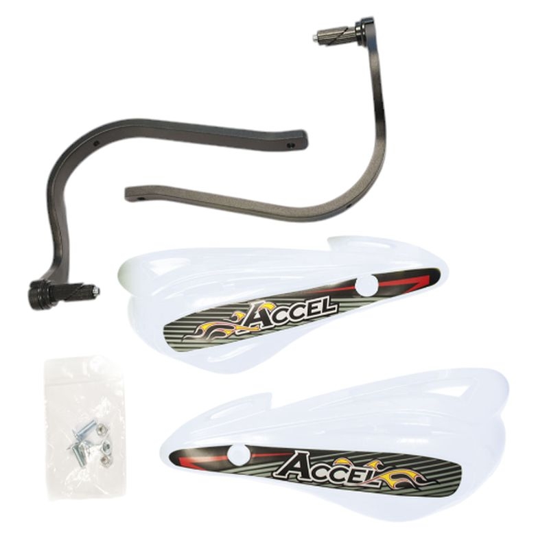 ACCEL OSŁONY RĄK (HANDBARY) Z MOCOWANIEM ALUMINIOWYM ATV (22+28MM) (ALU-CZARNY, PLASTIK-BIAŁY)