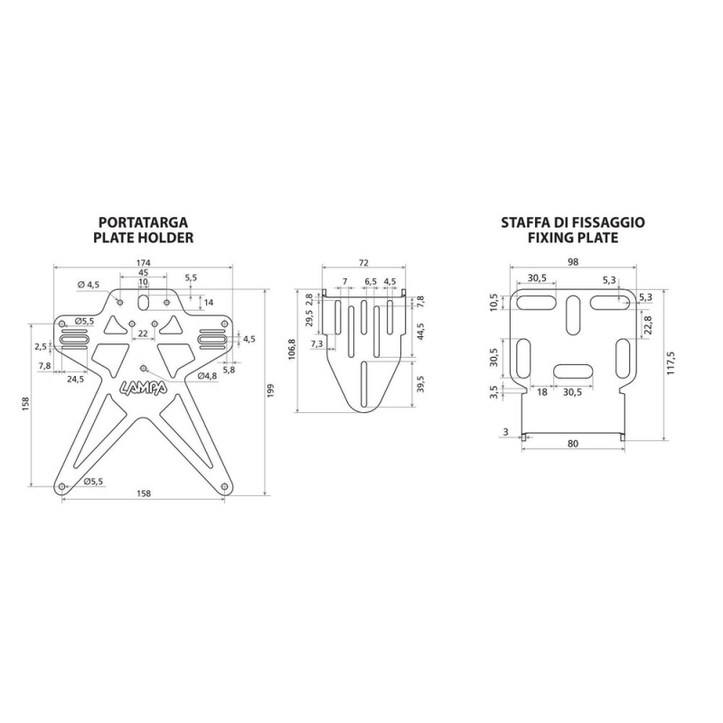 91643 Aero-X Evo 3, italian license plate holder with height and tilt adjustments