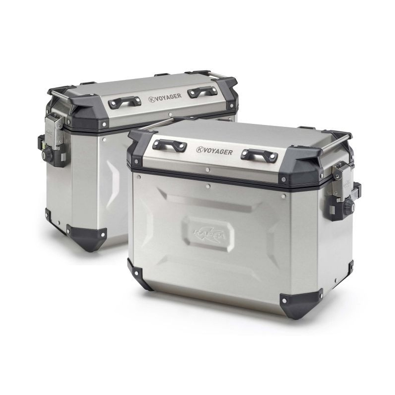 KAPPA KUFRY BOCZNE 37L PRAWY I 48L LEWY MONOKEY CAM SIDE KVG48A KVG37A K'VOYAGER ALUMINIOWE KOLOR SREBRNY