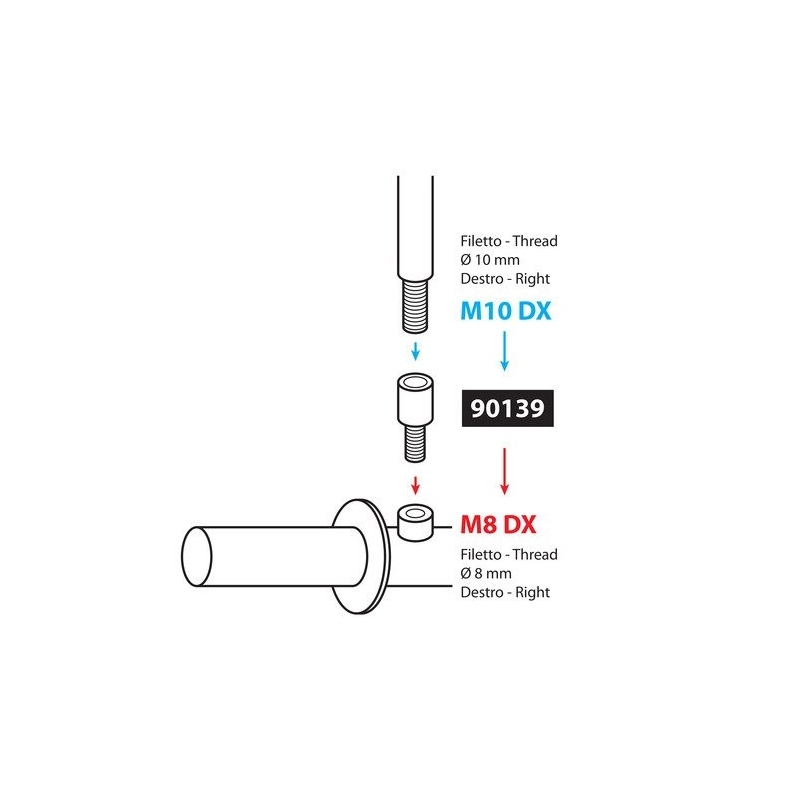 90139 Mirror adapters - Thread Ø 10 mm right Ø 8 mm right