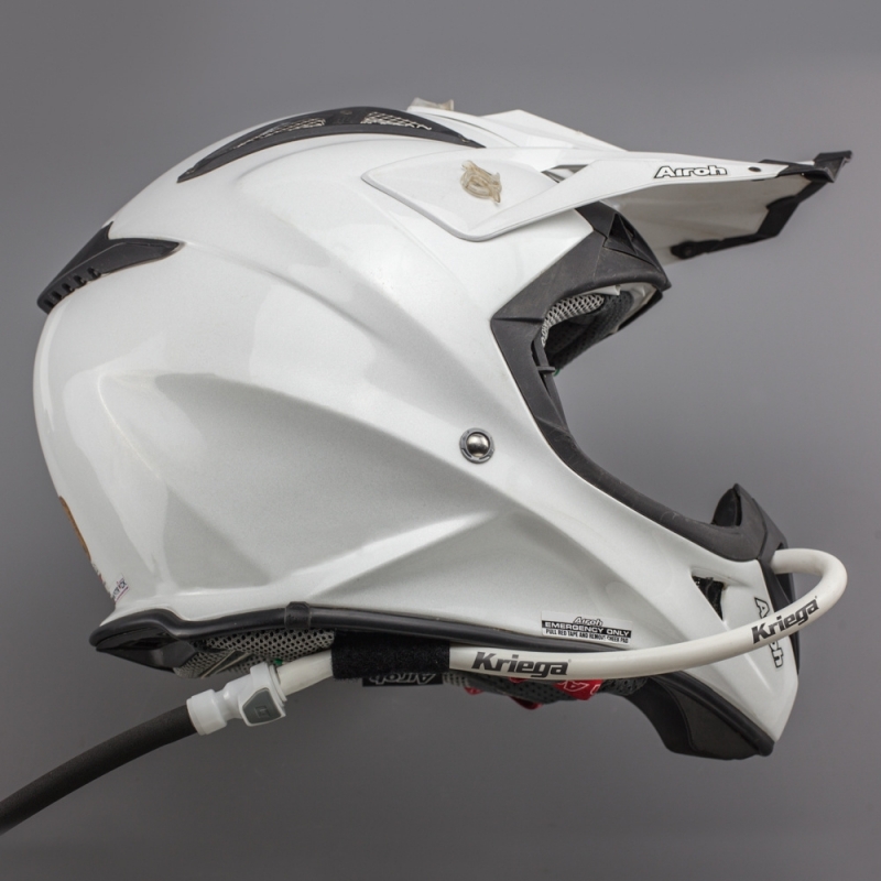 The Kriega Hands Free Kit (KAHFV) is a professional hydration solution for riders who need constant access to water without taking their hands off the handlebars. Designed for racing, hard-enduro, and high-performance road riding, this kit positions the bite valve directly inside the helmet near the rider's mouth, making hydration instant and safe.