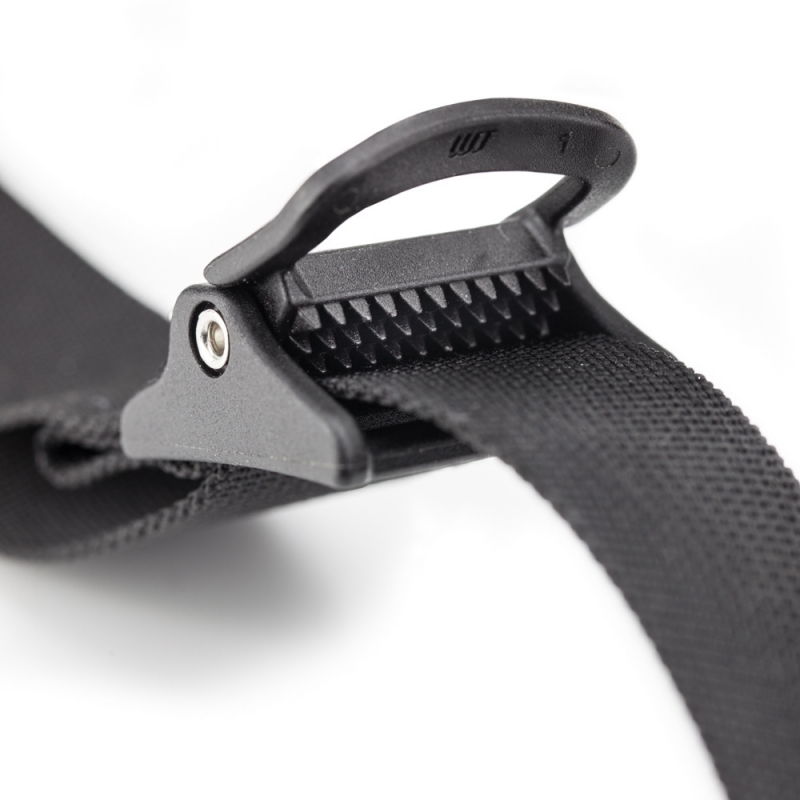 High-Grip Cam Buckle: The molded acetal cam buckle features ultra-strong spikes that bite into the webbing, providing a non-slip grip even when the straps are soaked in water or mud.