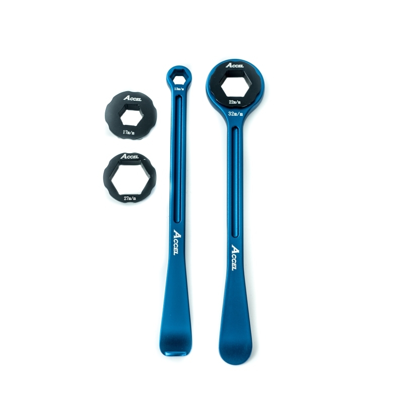 ACCEL KOMPLET ŁYŻEK DO OPON (23+24CM) ALU7075 KUTE Z KLUCZAMI 10,13,17,22,27,32 MM KOLOR NIEBIESKI (ŁYŻKA DO OPON)