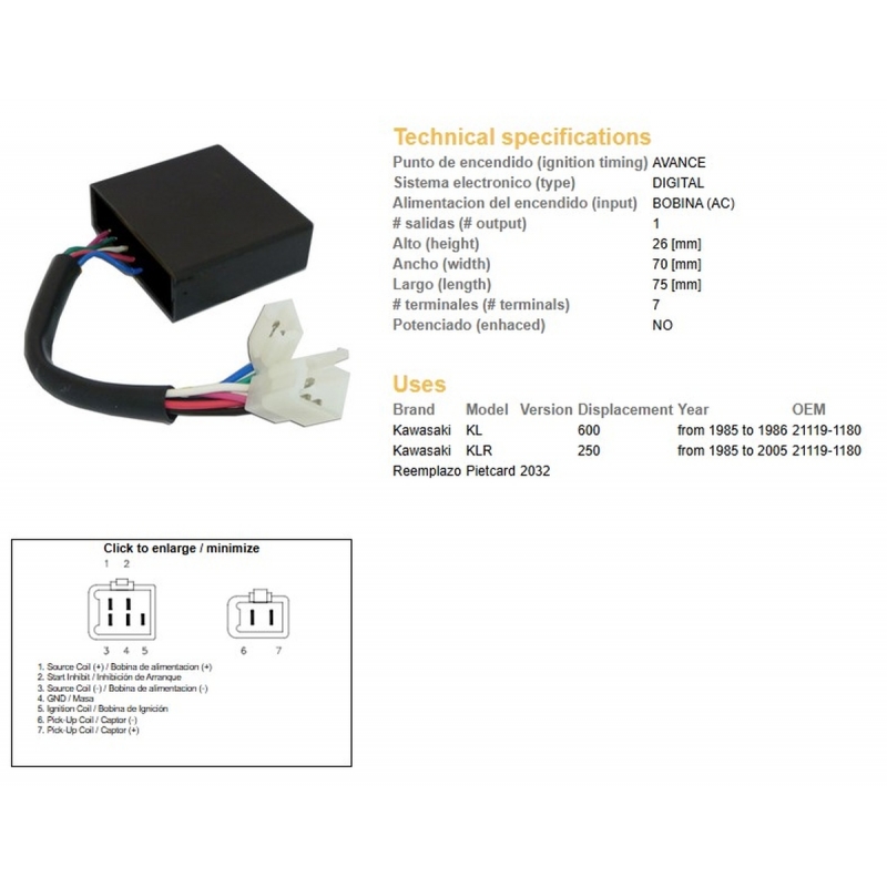 Nowy DZE MODUŁ ZAPŁONU CDI KAWASAKI KLR 250 '85-'05, KL 600 '85-'86 (21119-1180) Zobacz większy