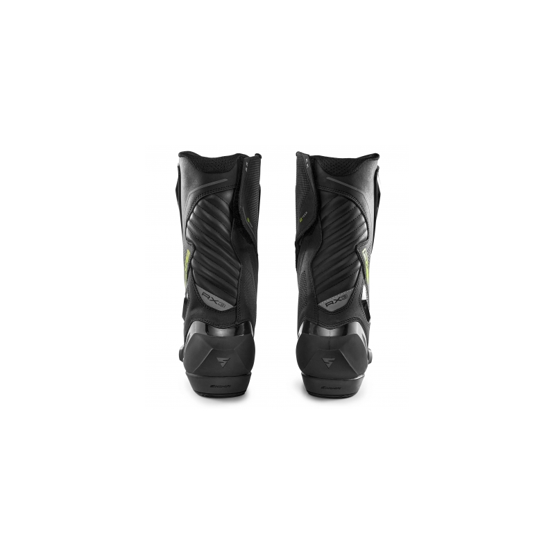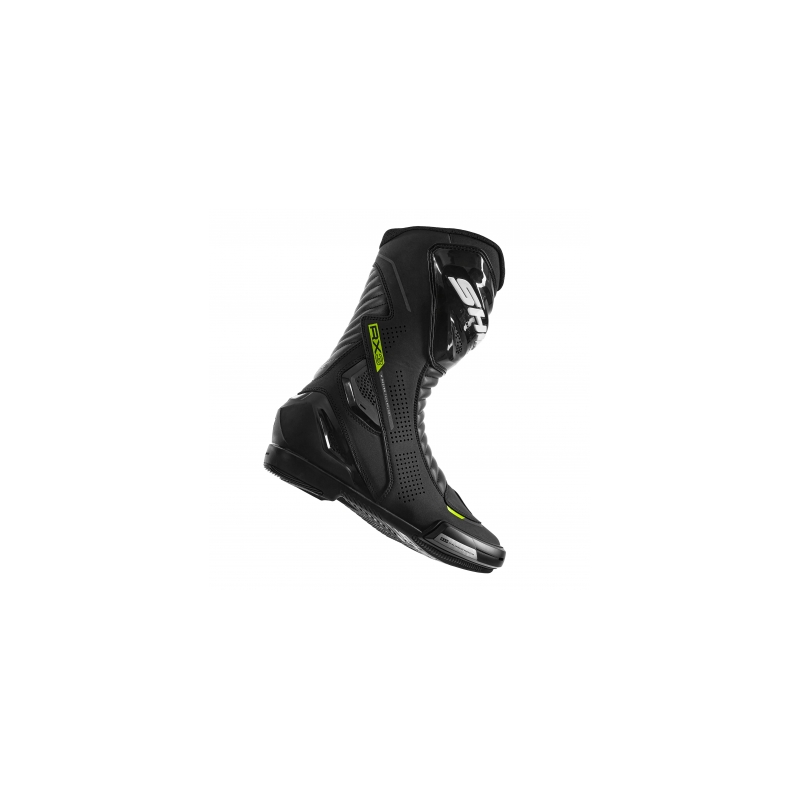 Buty SHIMA RX-3 to długie, sportowo-turystyczne buty motocyklowe, które łączą zaawansowaną ochronę z komfortem na każdej trasie. Wykonane ze skóry i mikrofibry, oferują idealne dopasowanie i wysoką trwałość. Protektory SAP™ z TPU na kostce, wzmocnienia na pięcie, palcach oraz piszczeli, a także wymienny, metalowy slider SAP na palcach, gwarantują najwyższy poziom bezpieczeństwa zarówno w dynamicznej jeździe, jak i podczas dłuższych podróży. Wewnętrzna wkładka z polipropylenu zwiększa sztywność konstrukcji, zapewniając optymalną stabilizację stopy. Buty RX-3 wyposażone są w perforowaną skórę, która zapewnia doskonałą wentylację, co sprawia, że są idealnym wyborem na długie, wymagające trasy. Miękka wyściółka oraz ergonomiczna cholewka gwarantują wysoki komfort użytkowania, nawet podczas wielogodzinnej jazdy. Dodatkowe elementy, takie jak osłona na zamek błyskawiczny oraz nakładka z TPU do zmiany biegów, podnoszą funkcjonalność butów w codziennym użytkowaniu. Buty RX-3 oferują również Night Vision System™, który poprawia widoczność motocyklisty dzięki elementom odblaskowym z przodu i z tyłu buta. Dostępne w kolorach BLACK dla fanów turystyki oraz sportowych, energetycznych wersjach kolorystycznych BLACK/WHITE, YELLOW FLUO, i RED FLUO, w rozmiarach 41 - 48. Buty SHIMA RX-3 to idealny wybór dla tych, którzy szukają połączenia ochrony, komfortu i dynamicznego stylu na trasie.