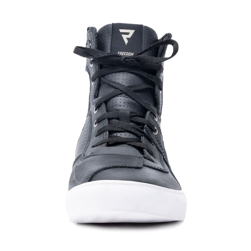 Buty motocyklowe Rebelhorn Vandal zostały uszyte ze skóry bydlęcej. Dobrą wentylację zapewniają perforowane panele i podszewka 3D mesh. Buty mają wzmocnioną podeszwę, twarde osłony pięt i kostek. Długi zamek z boku ułatwia ich zakładanie. Kolorystyka butów motocyklowych Vandal nawiązuje do kurtek Rebelhorn o tej samej nazwie.