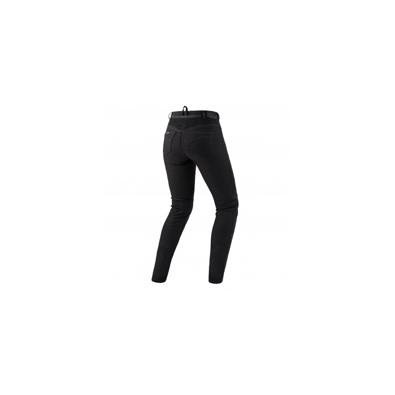 Model FLEXX to jeansy motocyklowe stworzone z myślą o kobiecych kształtach! Ich konstrukcja w połączeniu z wysoką talią oraz wąską nogawką gwarantuje doskonałe dopasowanie i podkreślenie kobiecej sylwetki. O Twój komfort podczas jazdy zadbają panele harmonijkowe umiejscowione z tyłu w obszarze talii oraz wykonanie z wyjątkowo elastycznego materiału. Połączenie bawełny, poliestru, wiskozy i elastanu, zapewnia bardzo dobre dopasowanie i podnosi komfort użytkowania. Jeansy FLEXX to także solidna ochrona. Wyposażone są w przewiewne certyfikowane protektory kolan SafeTech™ poziomu 1. Kieszenie na protektory posiadają 3-stopniową regulację wysokości, znajdują się na zewnątrz i są zamykane zamkiem. W ten sposób swoje jeansy motocyklowe szybko przekształcisz w spodnie codziennego użytku. W modelu FLEXX znajdziesz detale, za które pokochasz dużą funkcjonalność spodni – są one wyposażone w kieszenie przednie i tylne oraz zawieszkę do kluczy. Krótki zamek łączący i pętelka pozwolą w mgnieniu oka sparować jeansy z Twoją ulubioną kurtką motocyklową marki SHIMA. FLEXX dostępne w klasycznej czerni będą doskonałym uzupełnieniem szafy motocyklowej każdej kobiety.