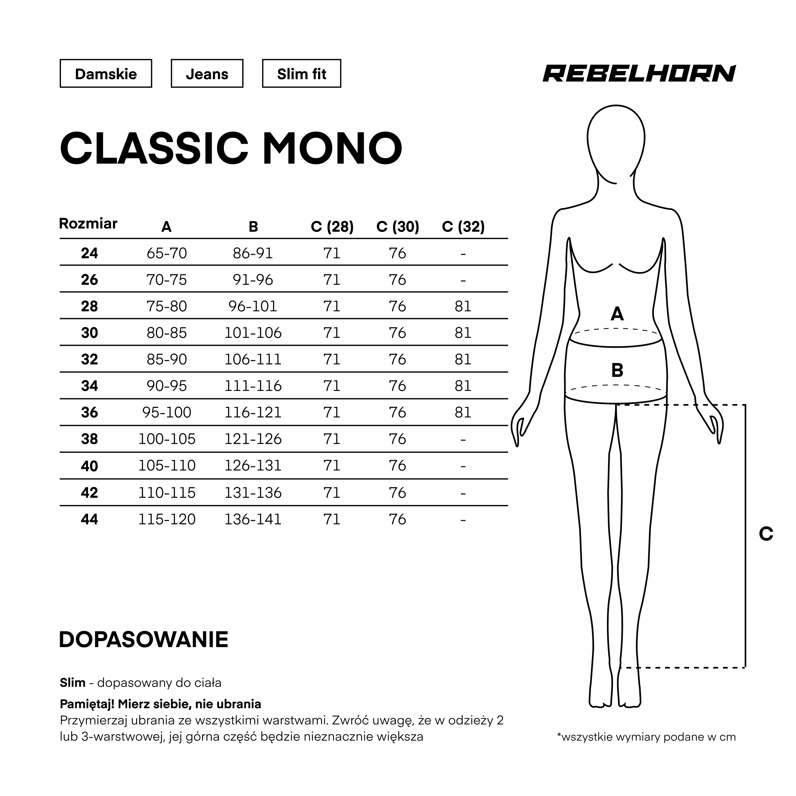 - High Waist / Slim Fit - dopasowany krój z bardzo wysokim stanem.