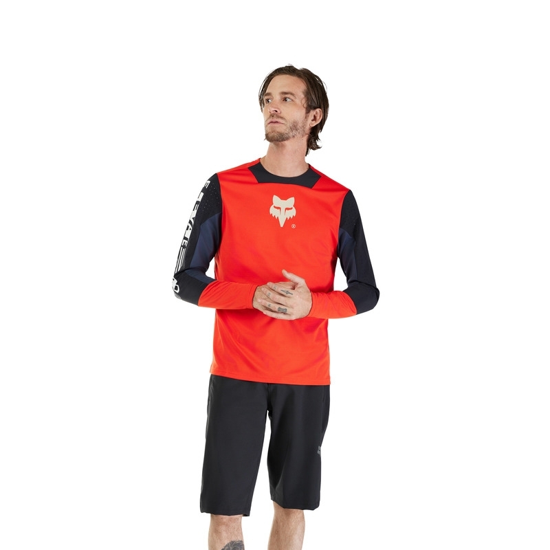 KOSZULKA ROWEROWA Z DŁUGIM RĘKAWEM JUNIOR FOX DEFEND ELEVATED FLUO RED