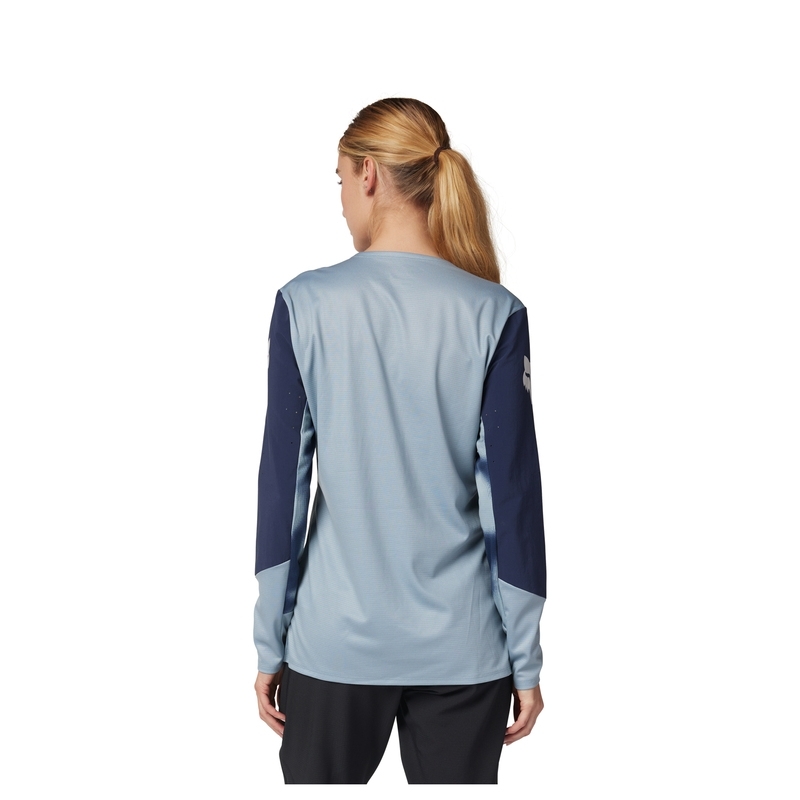 Damska koszulka rowerowa z długim rękawem FOX LADY DEFEND TAUNT - Stworzona do zjeżdżania po trasie z prędkością błyskawicy i wyglądająca równie imponująco. Dzięki tkaninie TruDri®, która odprowadza pot i utrzymuje świeżość, koszulka rowerowa Defend wykonana jest z materiałów z recyklingu, jest skrojona idealnie do jazdy po trasie, ma miejsce na ochraniacze oraz posiada przedłużony tył.