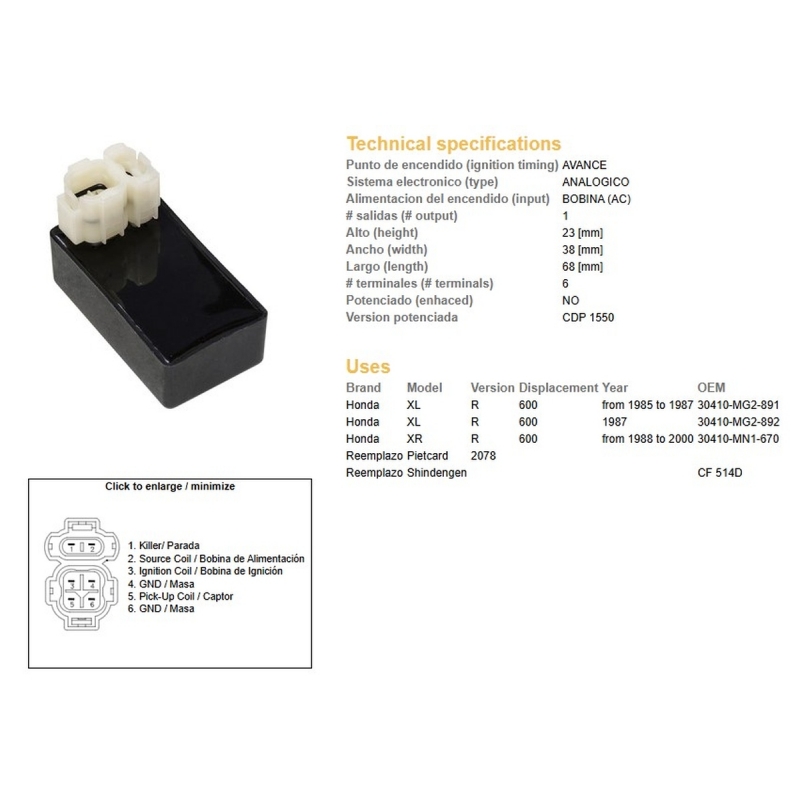 DZE MODUŁ ZAPŁONU CDI HONDA XL 600R '85-'87 XR 600R '88-'00 (30410-MN1-670)