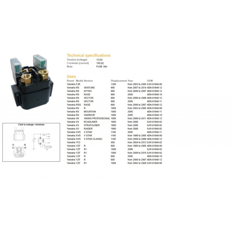 DZE PRZEKAŹNIK ROZRUSZNIKA YAMAHA XV 1900 '06- XVS 1100 '99-'09 YFZ 450 '04-'13 YZF 600 '05-'07 YZF 1000 '02-'10 (150A)