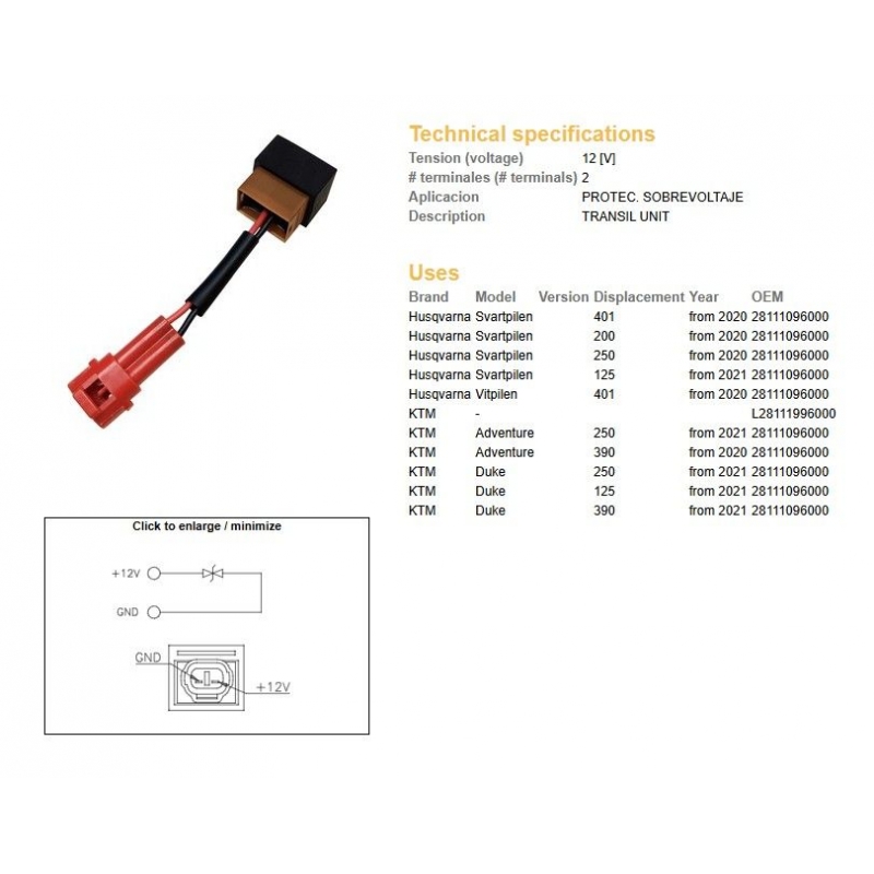 DZE JEDNOSTKA TRANSIL HUSQVARNA 125/200/250/401 SVARTPILEN '20- KTM 125/250/390 DUKE/ADVENTURE '20- (TRANSIL)(OEM 28111096000)