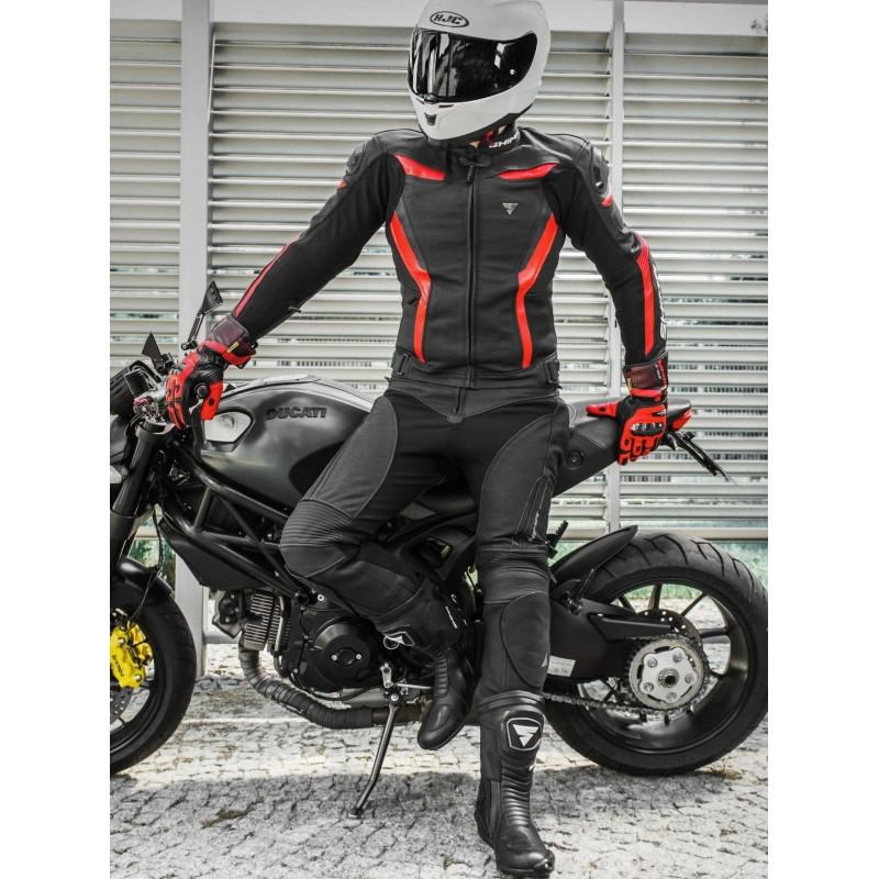 CHASE to stylowe spodnie wykonane ze skóry naturalnej, które idealnie komponują się z kurtką CHASE oraz PISTON. Elastyczne panele gwarantują idealne dopasowanie, a skórzane harmonijki zapewniają swobodę ruchów podczas jazdy. W obszarze bioder oraz kolan zastosowano podwójne warstwy skóry, dzięki którym wzrasta ochrona najbardziej narażonych na upadek partii ciała.Uzupełnj wszystkie pola przed wysłaniem pytania. :
