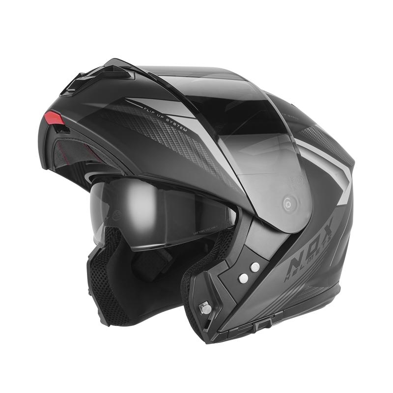 NOX KASK SZCZĘKOWY (FLIP-UP) Z BLENDĄ N968 SHIFT KOLOR CZARNY/SREBRNY MAT ROZMIAR L