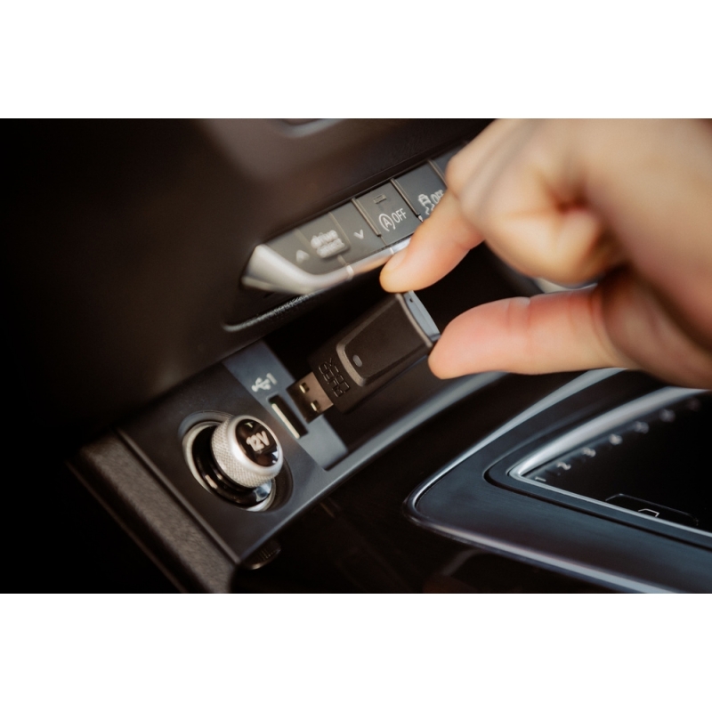 Szybka konfiguracja: Rozwiązanie typu Plug & Play – wystarczy wpiąć adapter do portu USB w samochodzie i sparować go z telefonem przez Bluetooth/Wi-Fi.