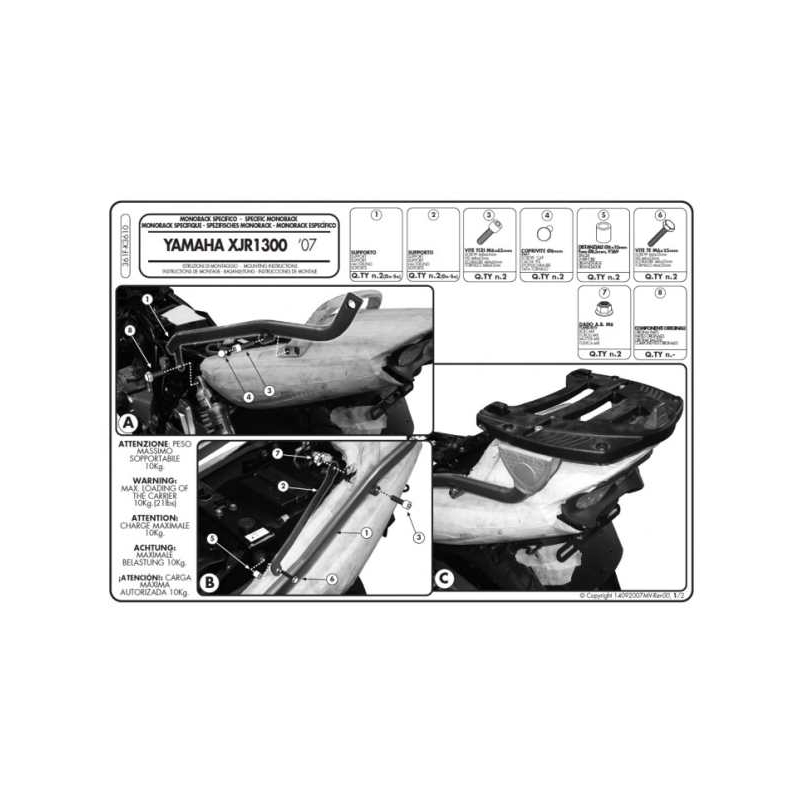 Nowy KAPPA STELAŻ KUFRA CENTRALNEGO YAMAHA XJR 1300 (07-14) ( BEZ PŁYTY ) Zobacz większy