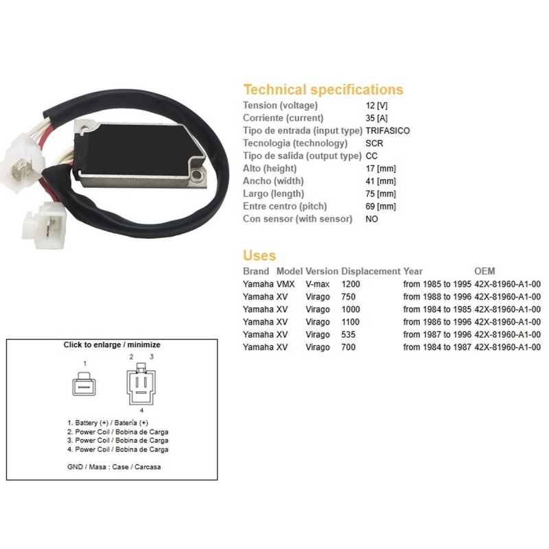 DZE REGULATOR NAPIĘCIA YAMAHA XV 535 VIRAGO '87-'96 XV 700 VIRAGO '84-'87 XV 750 VIRAGO '88-'96 XV 1000 VIRAGO '84-'85 VMX 1