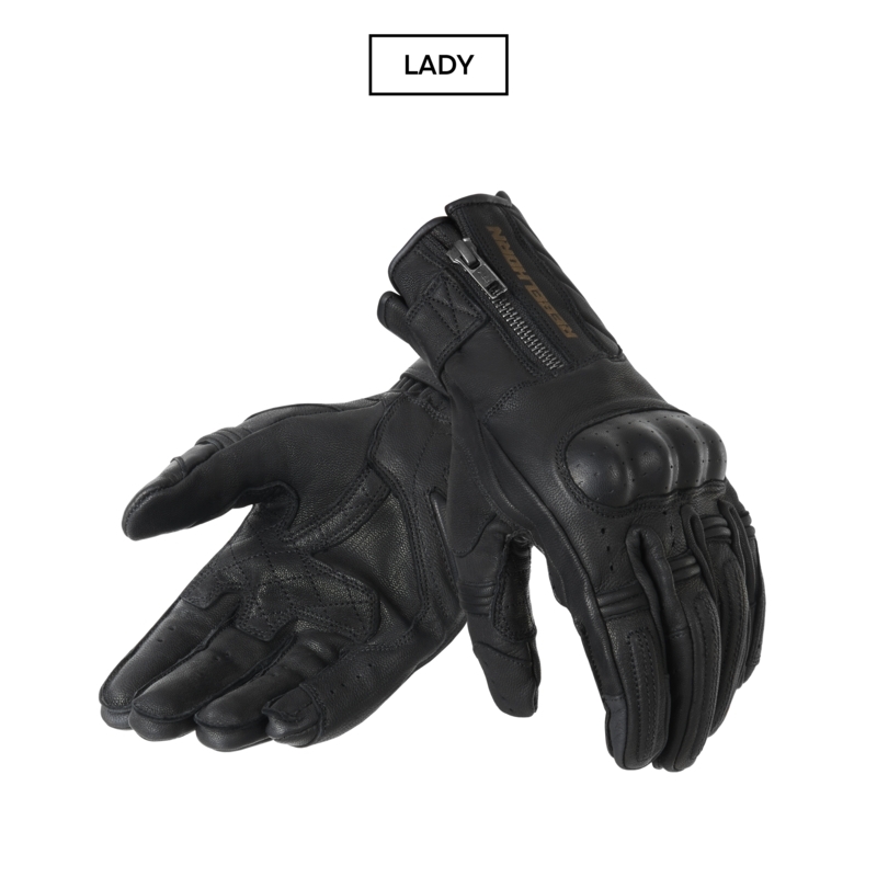 Rebelhorn Hunter Lady to wysokiej jakości rękawice motocyklowe o klasycznym wyglądzie. Zostały wykonane z połączenia skóry bydlęcej i koziej. Wyposażono je w twarde osłony kostek. Dodatkowy zamek na mankiecie ułatwia zakładanie i dodaje im klasycznego stylu. Zostały zaprojektowane tak, by doskonale dopasować się do kobiecej dłoni.
