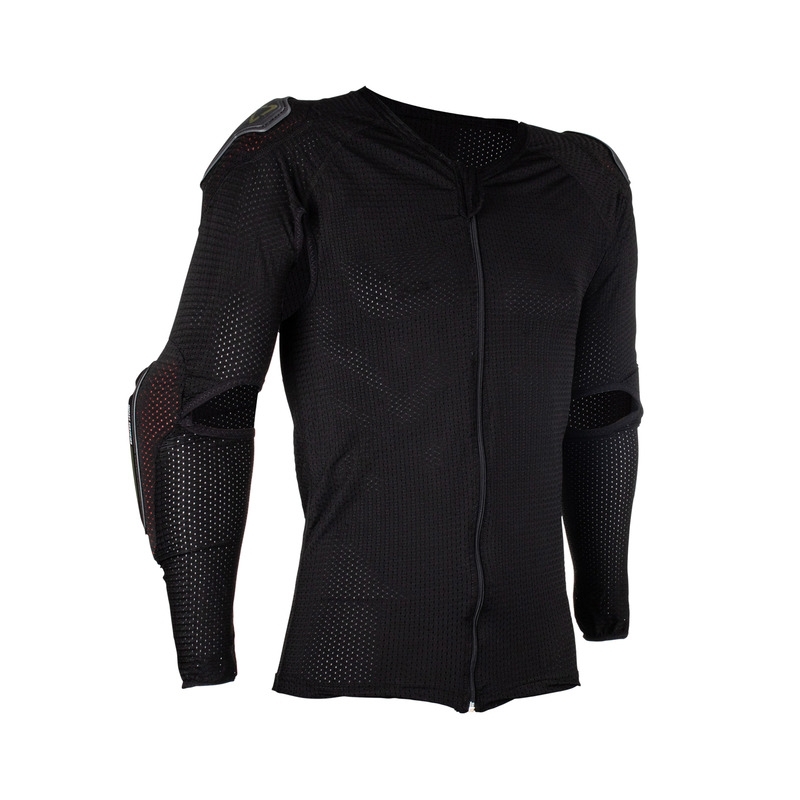 Koszulka z ochraniaczami LEATT 3.5 to modułowy ochraniacz ciała, składający się z dwóch części. Pierwsza część to kompresyjna koszulka na zamek z wbudowanymi ochraniaczami na ramiona i łokcie oraz regulowanym pasem nerkowym. Druga część to pełna twarda powłoka, certyfikowana CE jako ochrona dla klatki piersiowej i pleców, przeznaczona do noszenia na wierzchu. System ten zapewnia niezbędną ochronę, doskonałą wentylację i komfort użytkowania. Jest łatwy w zakładaniu i zdejmowaniu, co ułatwia czyszczenie i jest kompatybilny z ochraniaczem na szyję Leatt. Produkt osiągnął wynik 17 na 25 punktów w skali ochrony Leatt.