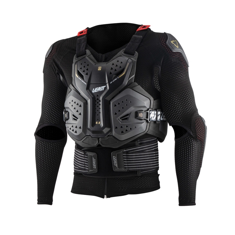 Koszulka z ochraniaczami LEATT 6.5 to modułowy ochraniacz ciała składający się z kompresyjnej koszulki na zamek z ochraniaczami na ramiona i łokcie oraz regulowanym pasem nerkowym. Posiada pełną twardą powłokę, certyfikowaną CE, chroniąca klatkę piersiową, plecy oraz boki. Ten system oferuje doskonałą ochronę, wentylację i komfort. Łatwość zakładania i zdejmowania pozwala na szybkie czyszczenie. Kompatybilny z ochraniaczem na szyję Leatt. Osiąga maksymalny wynik ochrony Leatt - 25 punktów.